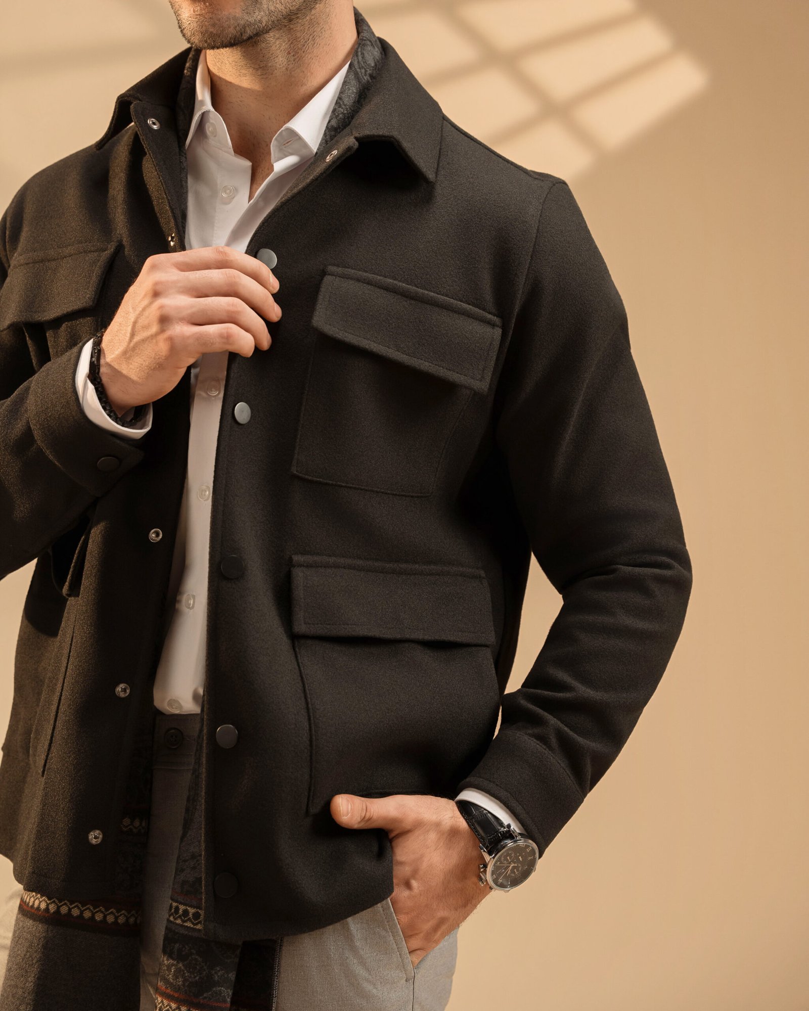 Be the first to review “Black Wool Blend Utility Jacket”